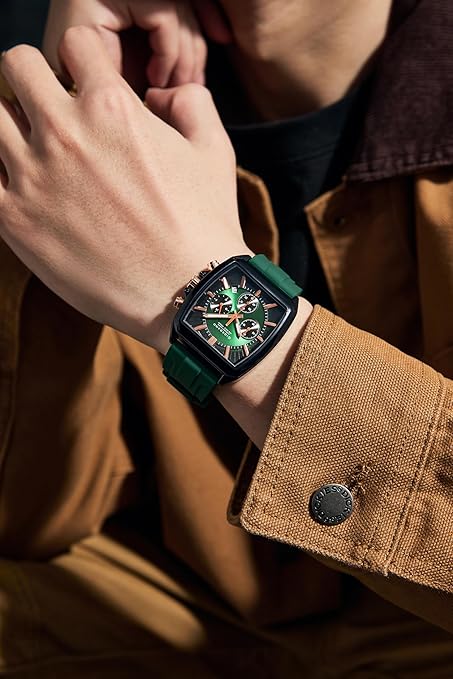 - Luxury Square Face Dial – Bold square face with accents and detailed sub-dials, blending elegance with sporty aesthetics.